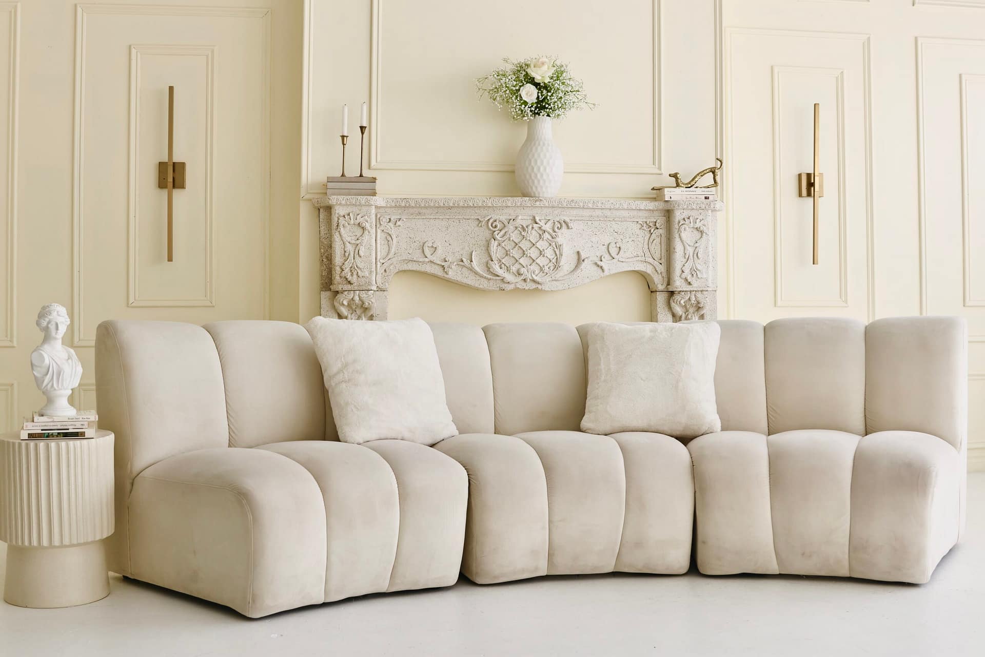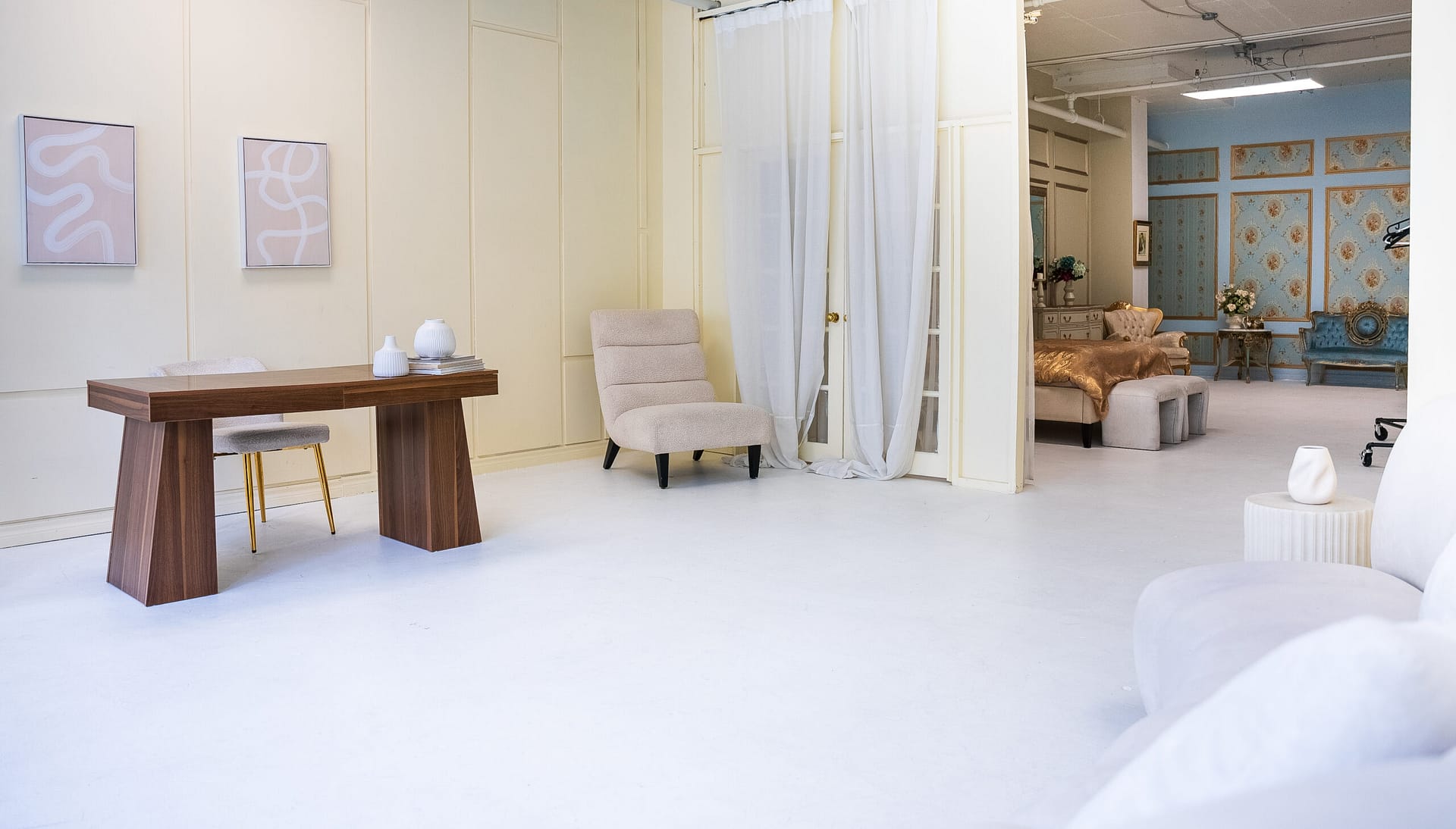 Présentation du Studio Blanc, un luxueux havre de style victorien s’étendant sur 1200 pieds carrés. Avec ses grandes fenêtres et ses moulures ornées, ce studio dégage une opulence et une élégance rappelant le chic parisien. Ornée de deux cheminées exquises, d’un mur doré et blanc époustouflant, 9 d’un somptueux lit queen size, d’un canapé en chenille incurvé et de meubles victoriens, chaque détail respire le raffinement. Parfait pour des séances photo raffinées telles que des mariages ou des éditoriaux, le Studio Blanc offre un décor intemporel pour capturer des moments inoubliables. Parmi ses caractéristiques remarquables, on trouve ses meubles anciens, ajoutant une couche supplémentaire de charme et de caractère à cet espace exquis.