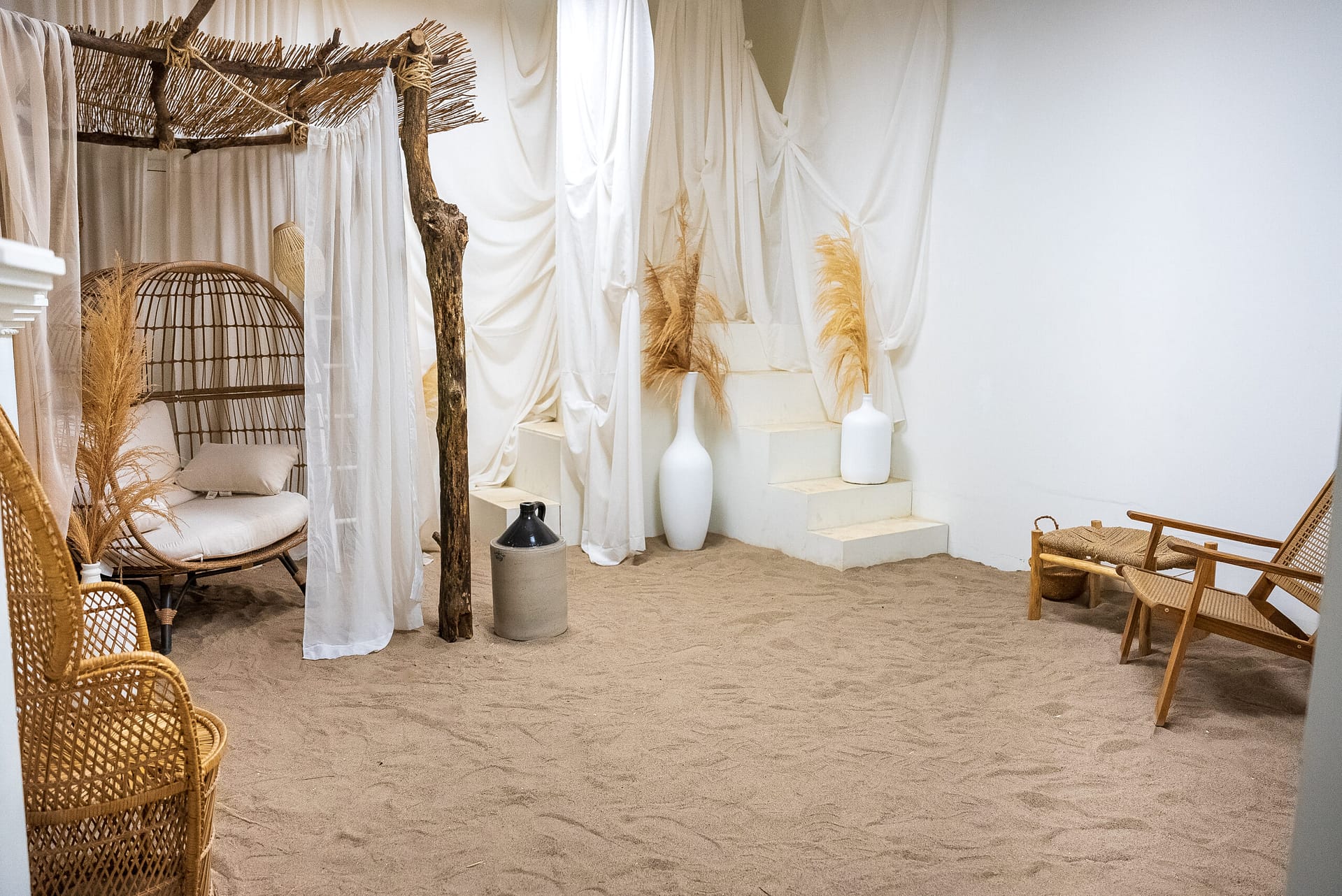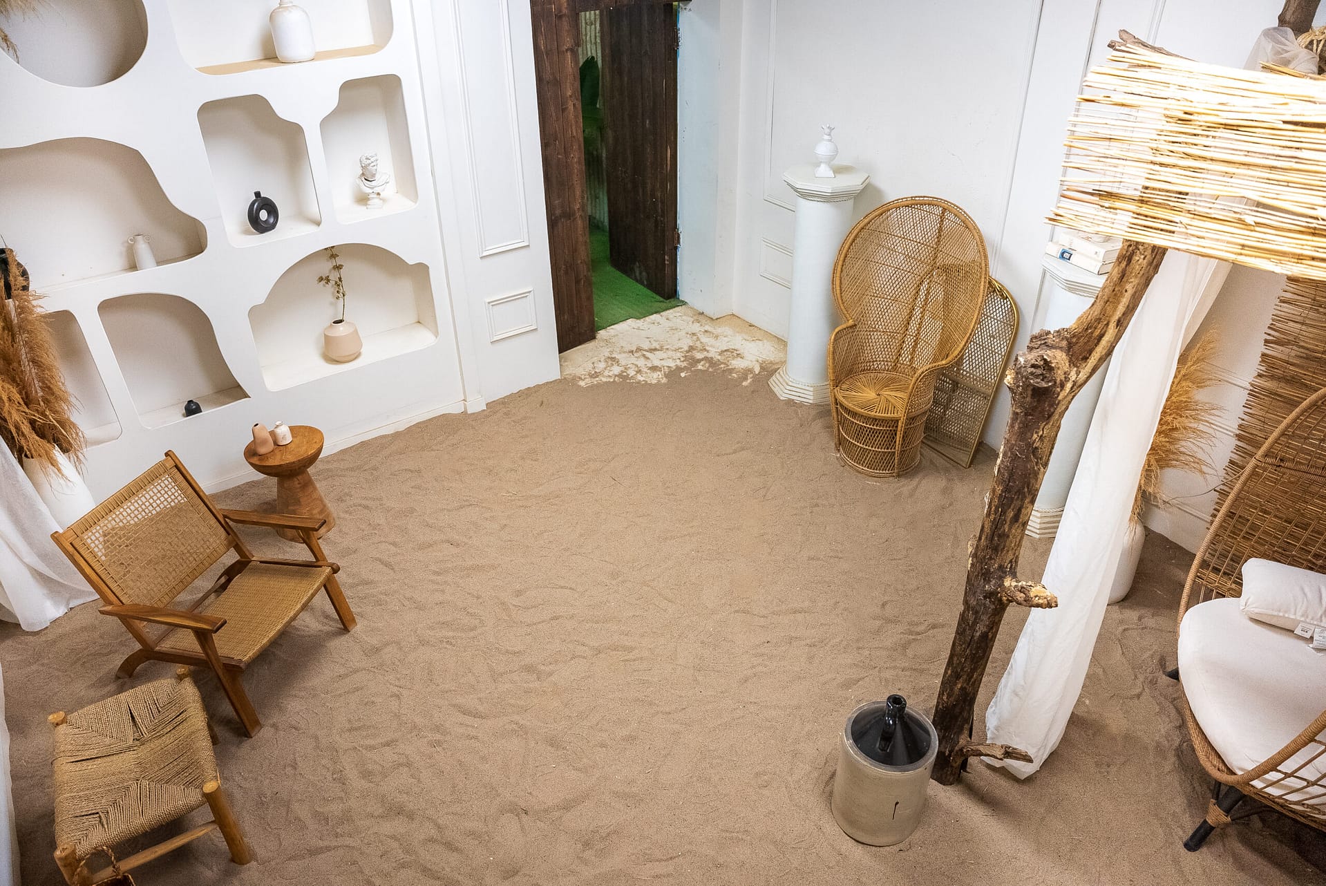 Bienvenue dans notre studio d’inspiration marocaine, où une ambiance méditerranéenne unique vous attend. Dotée de tapis vibrants, de poufs marocains et d’un luminaire de plafond traditionnel turc-marocain, notre salle de séjour vous transporte dans des bazars exotiques. Détendez-vous dans notre salon de style marocain avec une chicha et un bac à sable, ou explorez notre salle de bains extérieure de style yucatèque pour une retraite sereine. Sans lumière naturelle, notre studio offre une atmosphère enchanteresse à tout moment de la journée. La cuisine éco-verte ajoute une touche moderne tout en maintenant notre engagement envers la durabilité. Parfait pour les mariages, les séances photo de famille ou éditoriales, notre studio offre d’innombrables opportunités de capturer l’essence du charme méditerranéen avec sa décoration éclectique et ses textures.